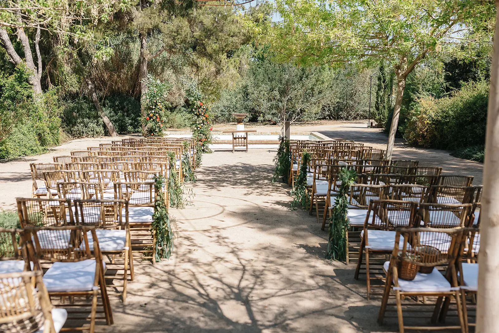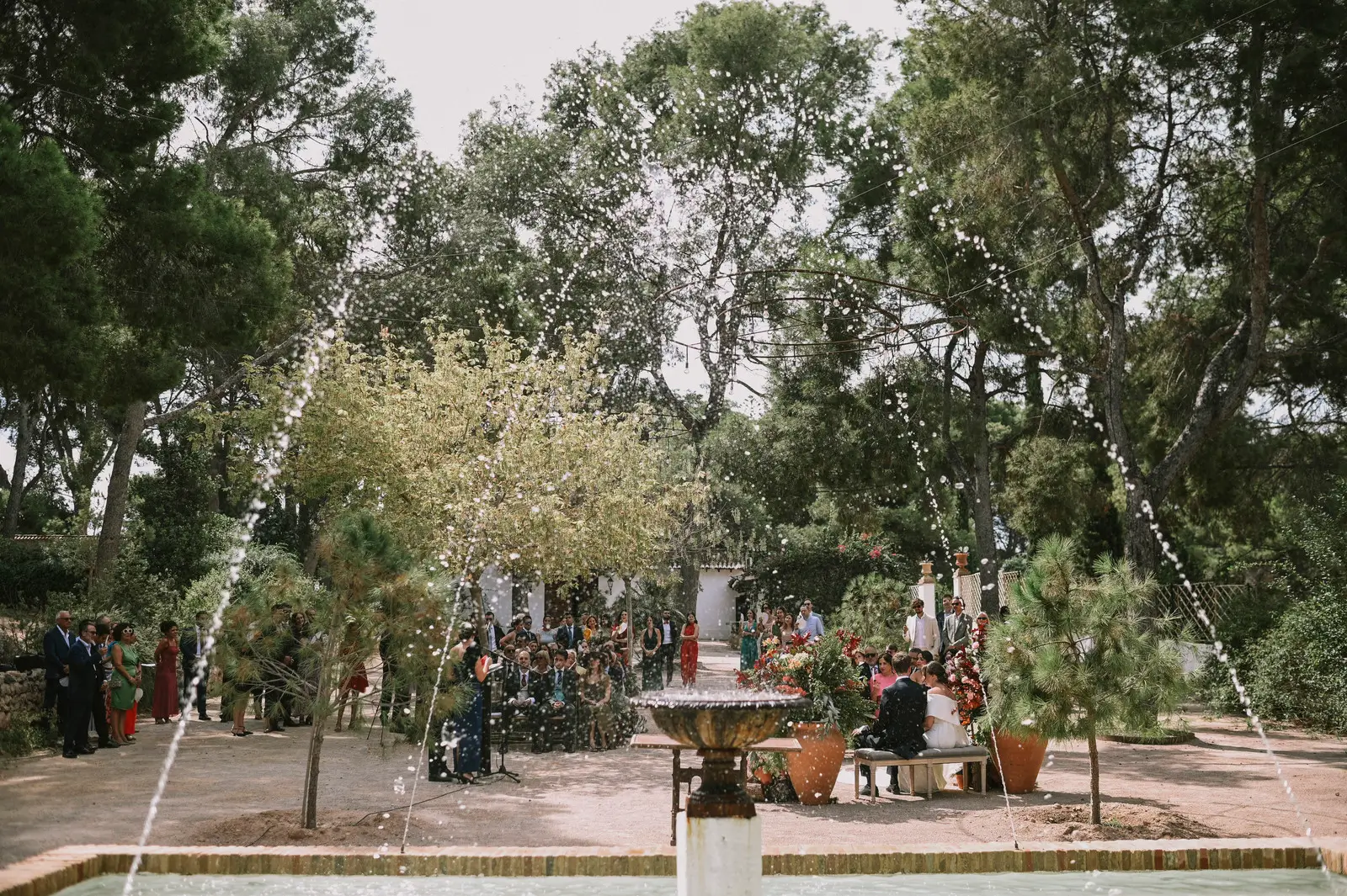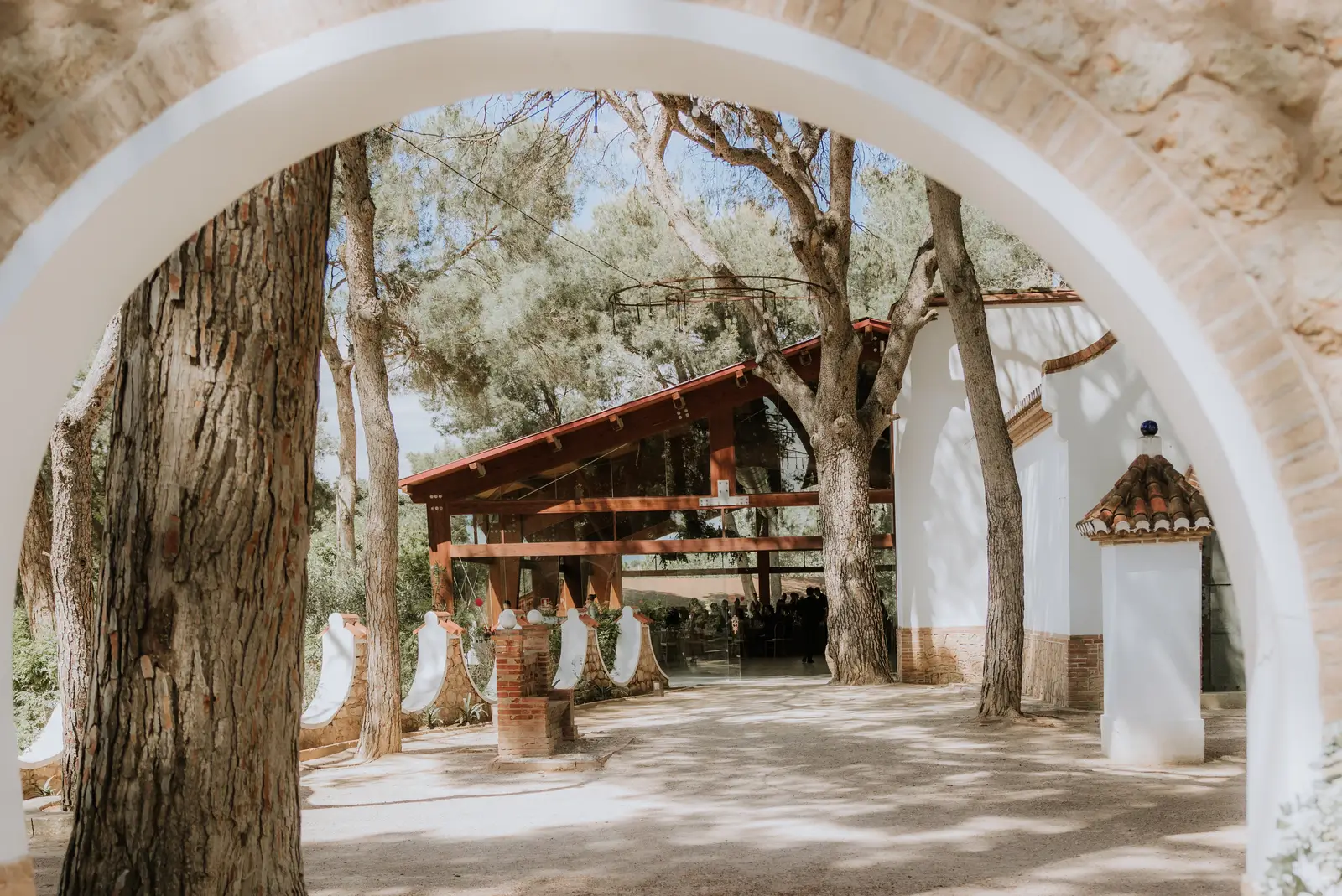 Las ceremonias civiles se celebran al aire libre, rodeadas de vegetación mediterránea. Puedes personalizar el entorno con arcos florales, alfombras, estructuras de madera o rincones de bienvenida. La ermita o la zona de la fuente son escenarios perfectos para ese momento tan especial.