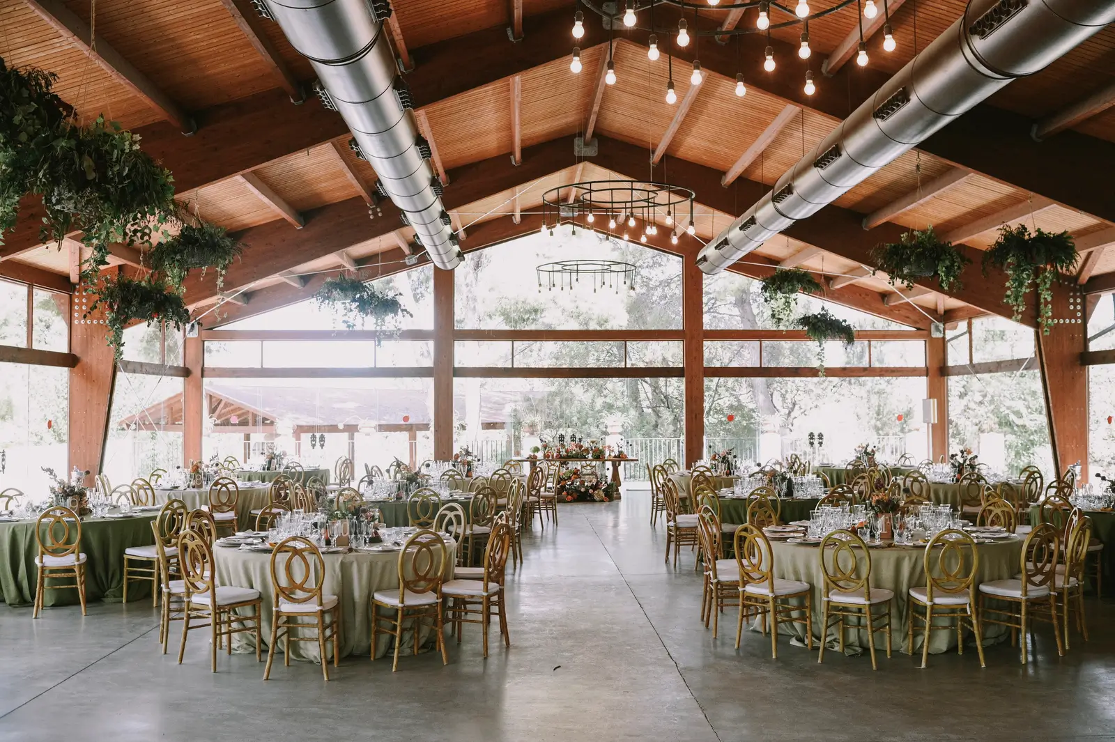 El banquete en Masía del Carmen se adapta al tipo de celebración que quieras. Puede celebrarse en la elegante pérgola acristalada de 595 m², un espacio amplio, completamente equipado y con vistas directas al entorno natural, ideal para disfrutar con total comodidad sin renunciar al paisaje.