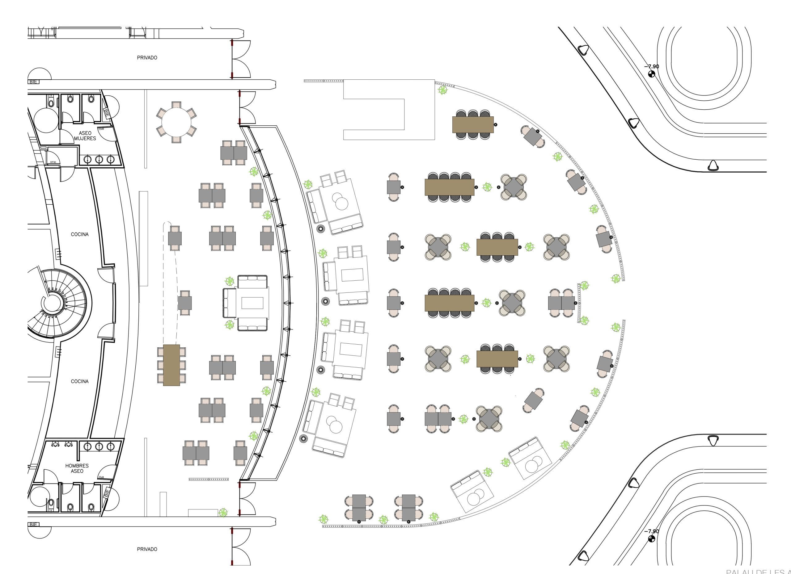 Contrapunto Les Arts destaca por su ubicación privilegiada y su concepto gastronómico diferencial. Su interior está concebido para ofrecer un entorno envolvente, donde estética y cocina se integran en una propuesta única. Además, su terraza exterior aporta un plus de exclusividad, ideal para disfrutar del cóctel o de momentos al aire libre. Todo el espacio está planteado para que la celebración transcurra con naturalidad, adaptándose con facilidad a cada formato y necesidad.
