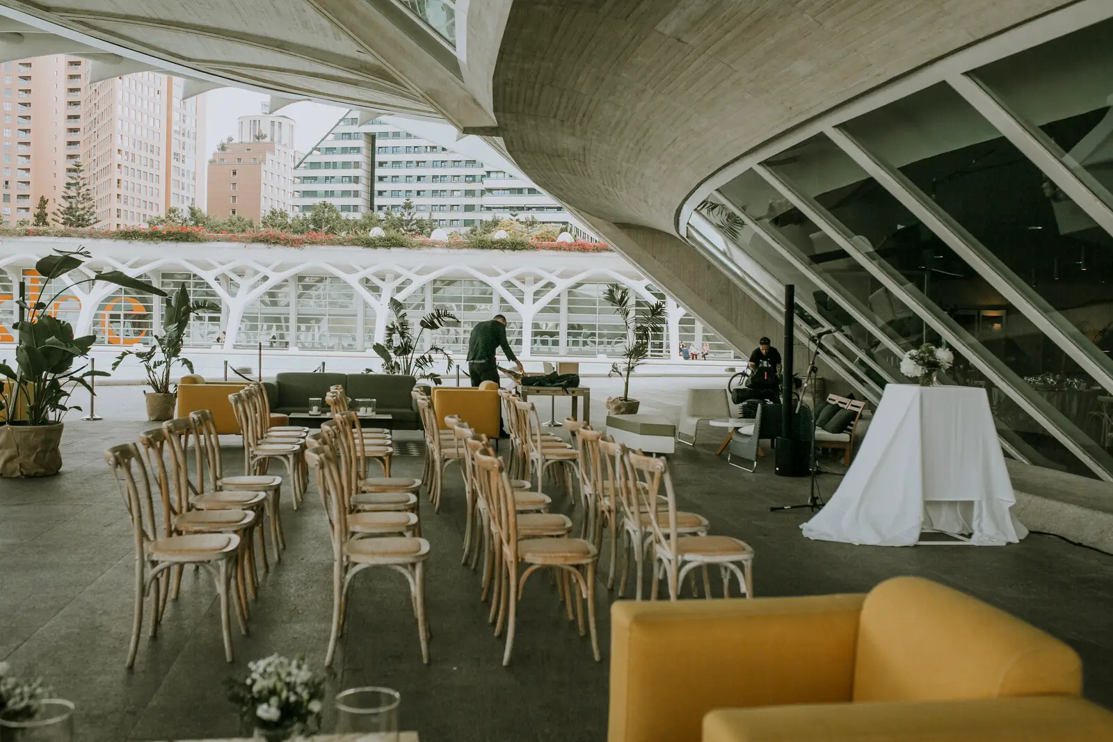 El Restaurante Contrapunto Les Arts es el escenario ideal para bodas modernas en València, especialmente para parejas que buscan una celebración con un marcado carácter gastronómico. Gracias a su cuidada distribución interior y a su amplia terraza exterior, el espacio se adapta con facilidad a distintos formatos: ceremonias civiles, cócteles, banquetes y celebraciones con un ambiente distendido y elegante. Su versatilidad y estética contemporánea lo convierten en una opción perfecta para bodas urbanas, actuales y sofisticadas, en un enclave emblemático de la ciudad, junto al Palau de les Arts Reina Sofía.