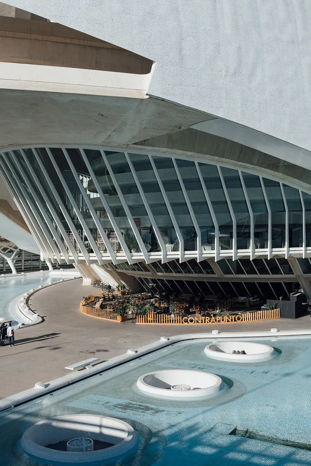 El Restaurante Contrapunto Les Arts se encuentra en la planta baja del emblemático Palau de les Arts Reina Sofía, en Valencia, frente al Hemisfèric y en el entorno de la Ciudad de las Artes y las Ciencias. Se trata de un espacio concebido para ofrecer experiencias gastronómicas y estéticas memorables, gestionado por un equipo joven, dinámico y profesional.