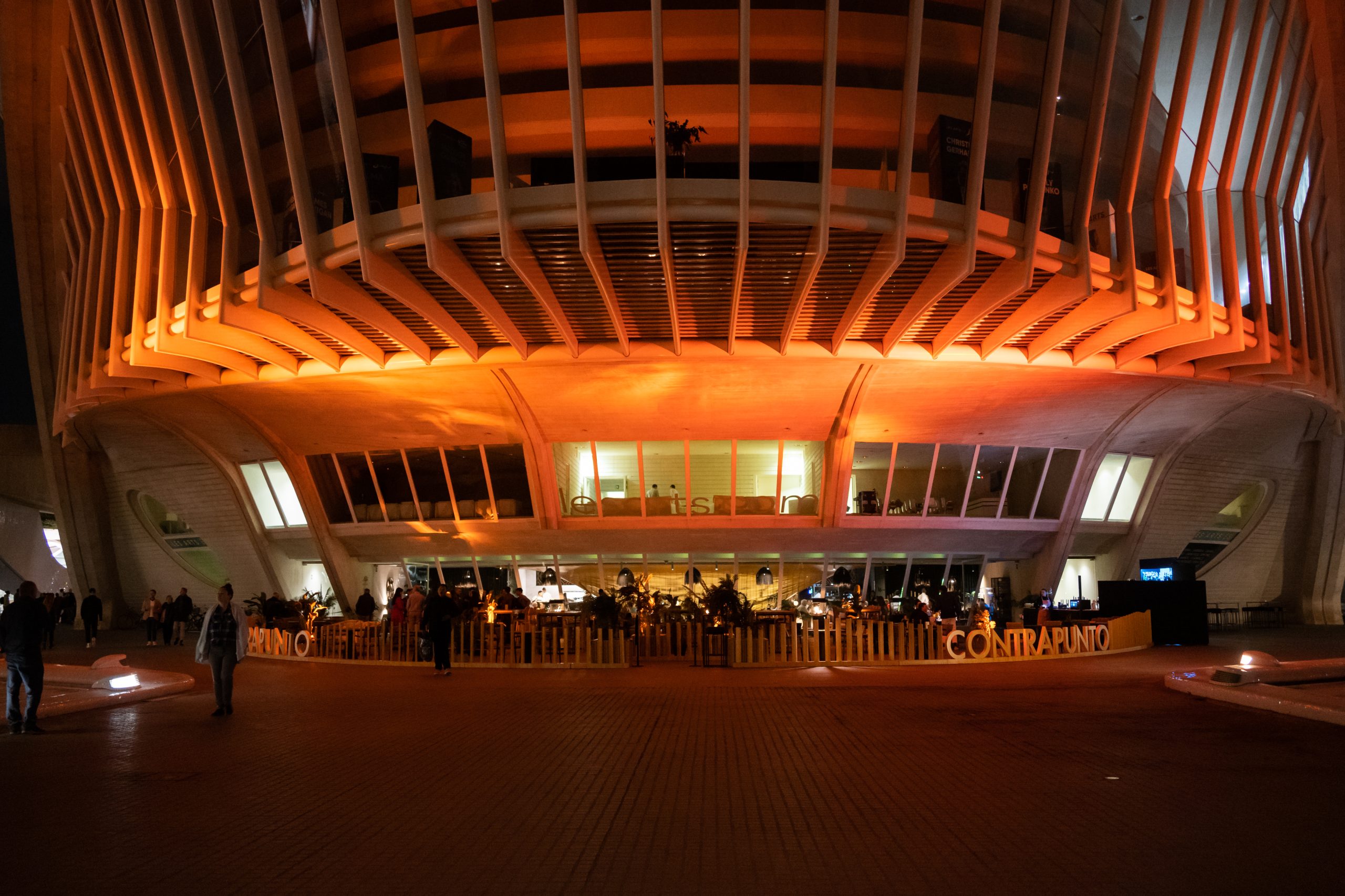 Contrapunto Les Arts cuenta con una amplia terraza en la planta baja del Palau, un espacio al aire libre que invita a saborear cada plato con calma. Rodeada de arquitectura vanguardista, con vistas al Hemisfèric y al emblemático enclave de Les Arts, la terraza se convierte en el escenario perfecto para disfrutar de una cena bajo el cielo de València, antes o después de cada función.