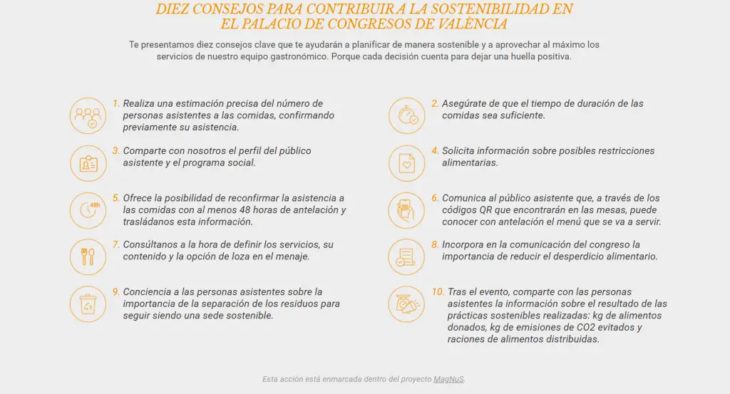To reinforce these good practices, the Congress Center of Valencia, one of the strategic partners of Magnus from which Gourmet Catering & events is partner gastronomic exclusively, has developed a Decalogue of Sustainability in Events.