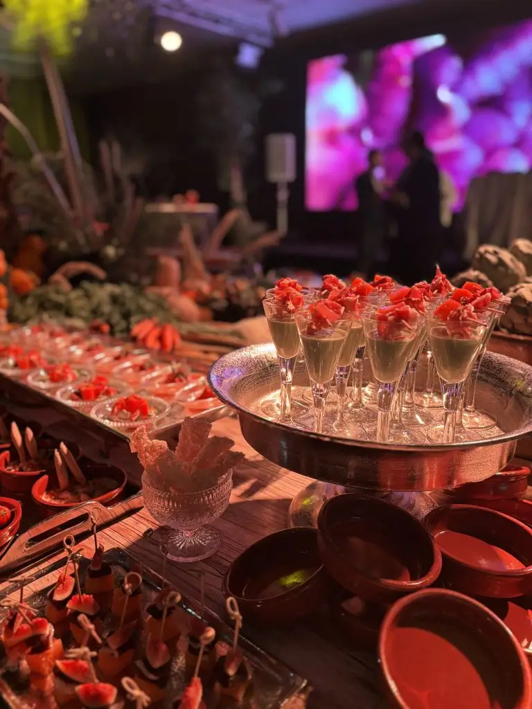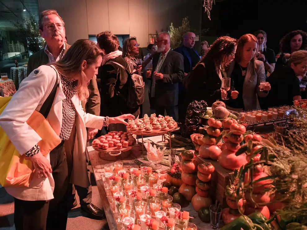 Valencia. The evening of that Monday began with an immersive experience designed by Gourmet Catering & Events, which converted access to Veles e Vents into a tour of the Mediterranean pantry. An olive tree presided over the hall as a symbol of the territory, surrounded by a scenery inspired by the garden, the sea and the lagoon. Aromas, textures and colors were combined in a proposal that paid tribute to the origin and the product.