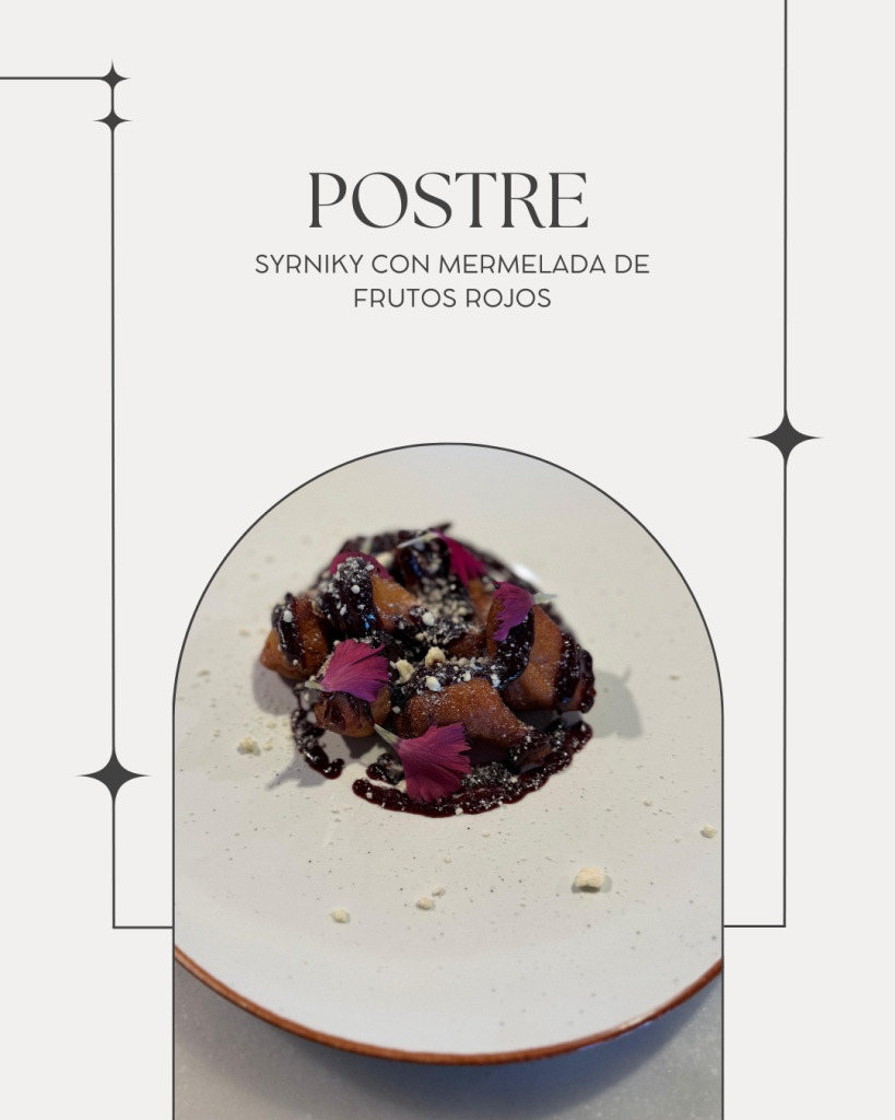 The finale, syrniki with red fruit jam, pays direct homage to Russian tradition. The delicate, slightly tangy syrniki are accompanied by red fruits that bring sweetness and melancholy. A closing that tastes of memory, nostalgia, and what might have been but no longer is.