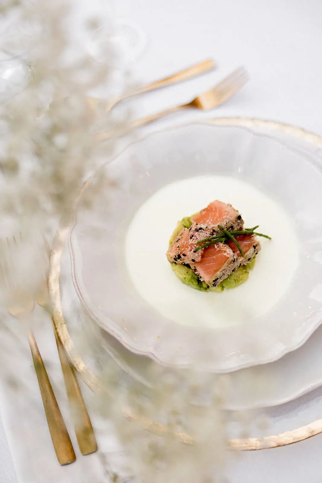 Cada propuesta parte de un proceso creativo estructurado, en el que cocina, espacio y ritmo del evento se trabajan de forma conjunta. El resultado: una gastronomía que equilibra lo tradicional y lo contemporáneo, con sabores frescos, técnicas actuales y presentaciones que sorprenden.