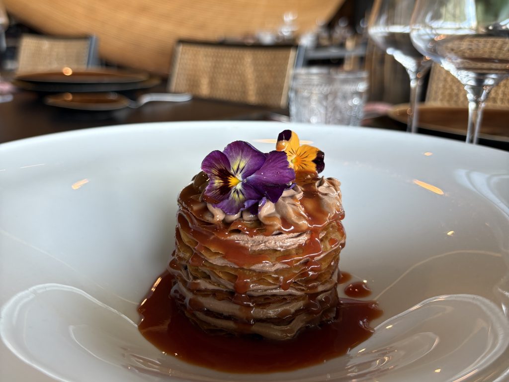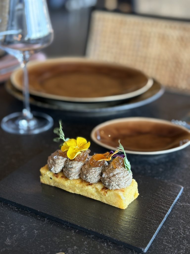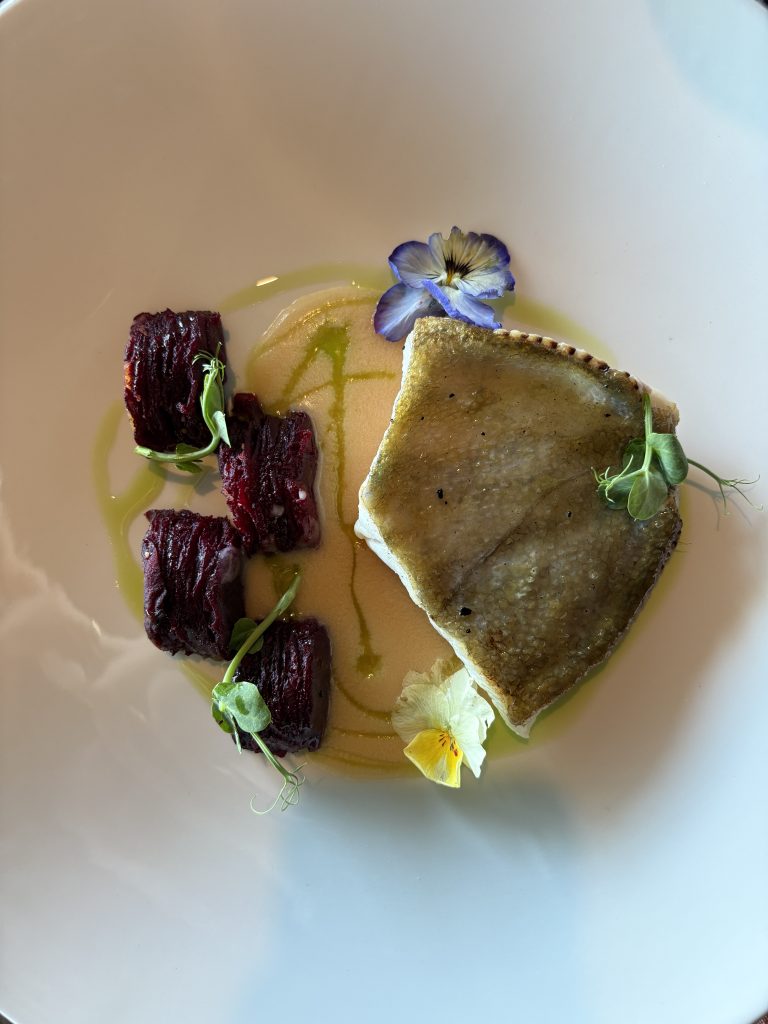 La experiencia gastronómica comienza con una polenta con paté de vaca vieja y gel de moscatel añejo, un inicio envolvente y lleno de matices que se armoniza con Bitoku 2022 (Adega Do Demo, Ribeiro, Treixadura). A continuación, el San Pedro con milhojas de remolacha, beurre blanc y aceite de perejil se acompaña de Château Closiot 2022 (Jean-Marie Guffens, Bordeaux, Sauvignon Blanc y Sémillon). El cierre lo aportan los siete velos de chocolate, un guiño directo a la danza más célebre de la trama, acompañados de Baron-Fuenté Grande Réserve Brut, un champagne elaborado con Pinot Meunier, Chardonnay y Pinot Noir en Charly-sur-Marne.