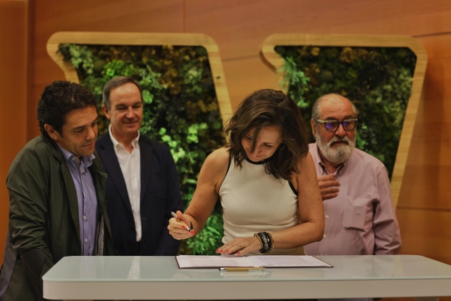 El concejal de Mejora Climática y Eficiencia Energética y presidente del CEMAS, Carlos Mundina, ha firmado el contrato de colaboración del centro con el Palacio de Congresos, la Fundación Lluís Alcanyís (Universitat de València) y la empresa de restauración Gourmet Catering & Eventos.